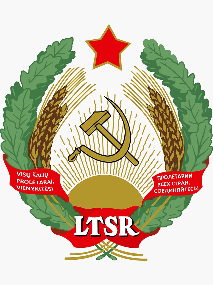 The emblem is an example of so-called "socialist heraldry". It featured symbols of agriculture (oak branches and wheat). The rising sun stood for the future of the Lithuanian nation, the red star as well as the hammer and sickle for the victory of communism and the "world-wide socialist community of states". The banner bore the USSR State motto (Proletarians of all countries, unite!) in both Russian and Lithuanian (Visų šalių proletarai, vienykitės!). The initialism of the Lithuanian SSR is shown only in the Lithuanian language – LTSR, for Lietuvos Tarybų Socialistinė Respublika, or Lithuanian Soviet Socialist Republic. The coat of arms differed little from those of Estonian, Latvian, Moldavian or other soviet socialist republics.